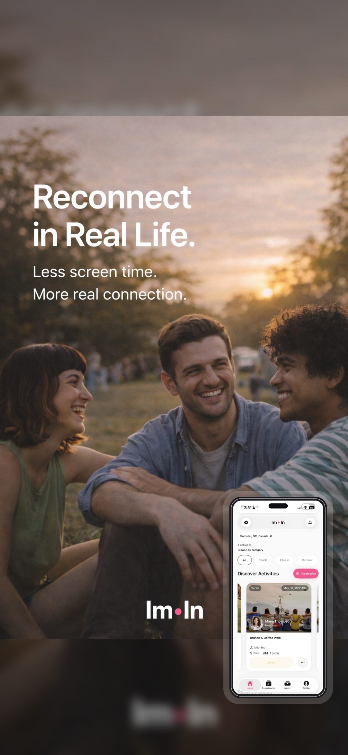 Launch a 60-minute Pulse when you're free, or plan ahead with Activities. ImIn uniquely bridges both.